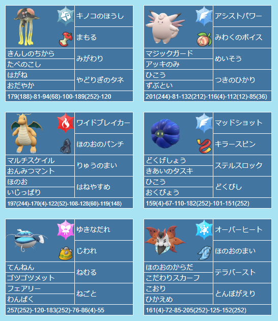 カイリューが炎テラスである都合、ステルスロックによる補助が欲しくこのような技構成になりました。パワージェムも欲しかったです。